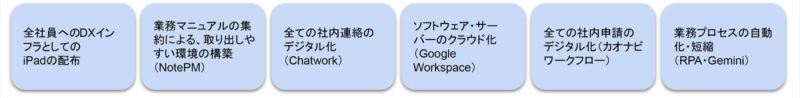 - 全社員へのDXインフラとしてのiPadの配布および活用推進