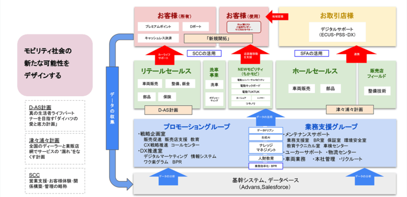 滋賀ダイハツ販売株式会社は、めまぐるしく進化するデジタル技術と、変化し続けるお客様のニーズへ迅速に対応し、お客様の満足度を一層向上させるため、経営戦略の重要な柱としてデジタルトランスフォーメーション(DX)を強力に推進してまいります。