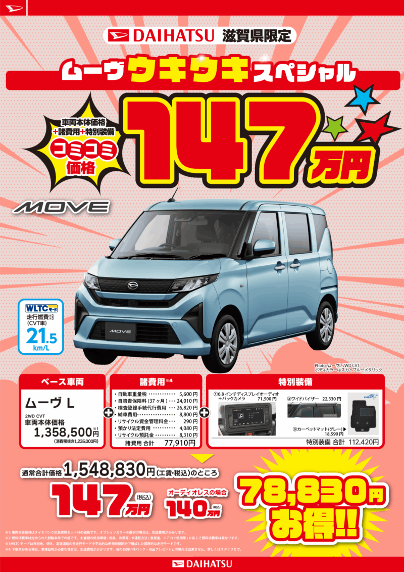 諸々コミコミでお得に対象の車両をご購入いただける「ウキウキスペシャル」プランです!