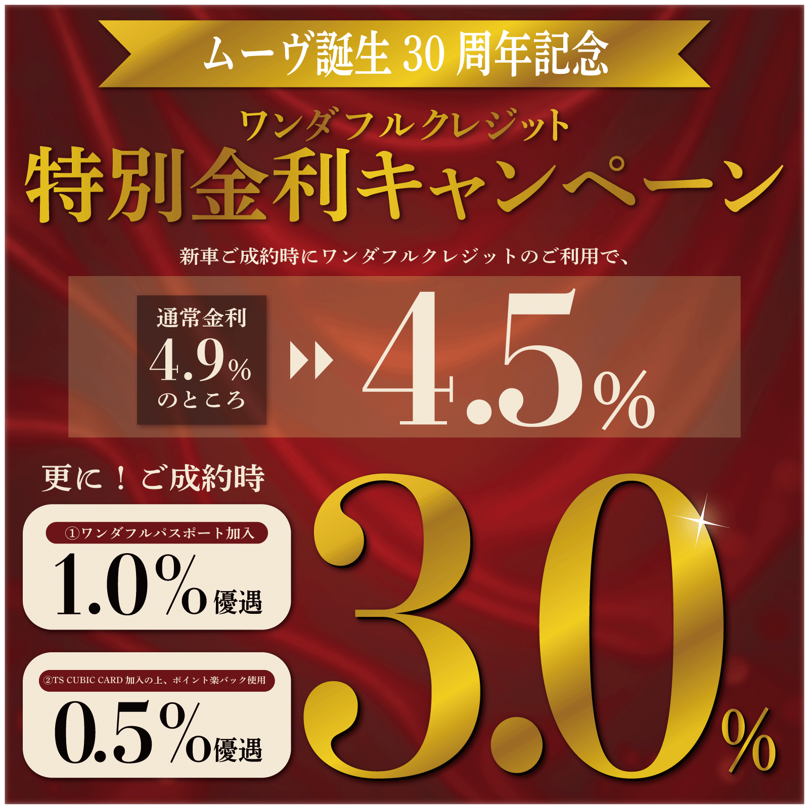 この度、ムーヴ30周年を記念して【ワンダフルクレジット特別金利キャンペーン】を実施いたします!