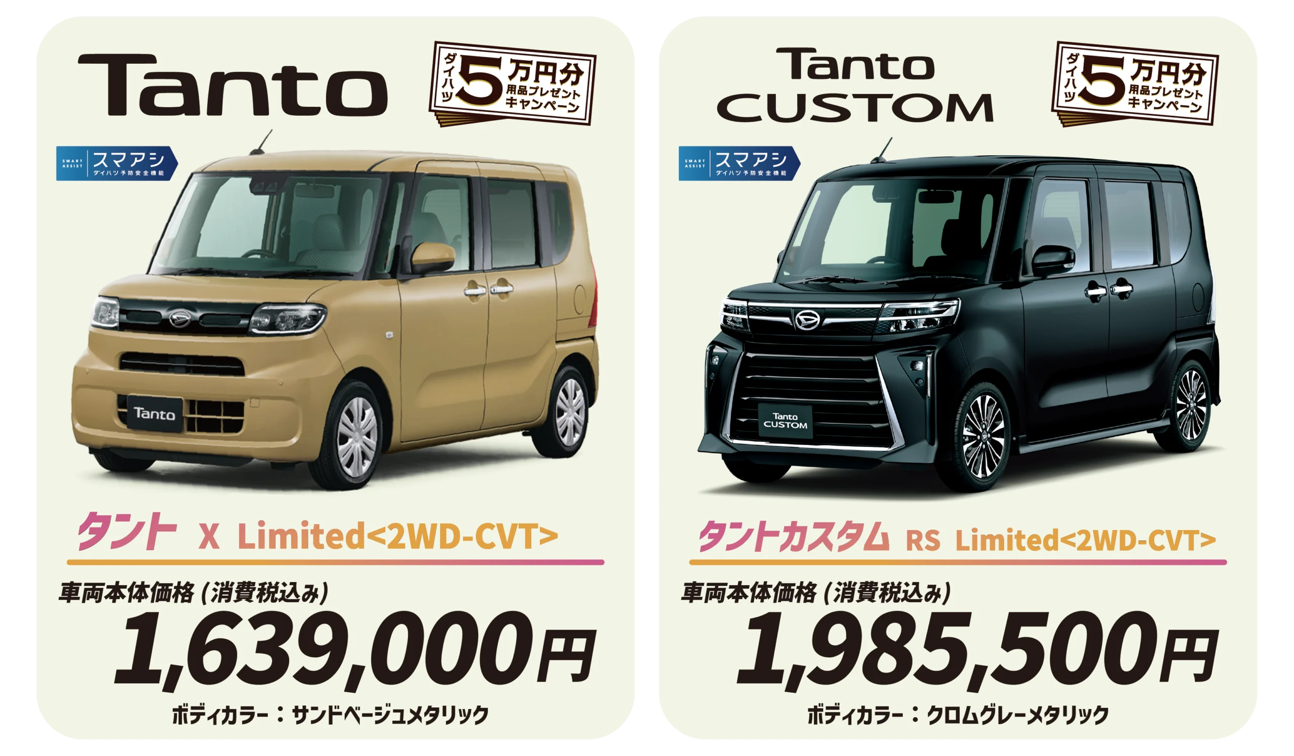 キャンペーン期間中に対象車種と用品5万円(消費税抜き)のご成約で用品5万円分を購入金額から割引!!